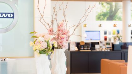 こんにちは。ボルボ・カー静岡です。今週のお花は、瑞々しいグリーンの表情が美しい、北欧を感じるコーディネート。やわらかな葉色に、動きのあるキウイ、ケイトウが空間に自然のリズムを添えています。ぜひ、ショールームにお立ち寄りください。